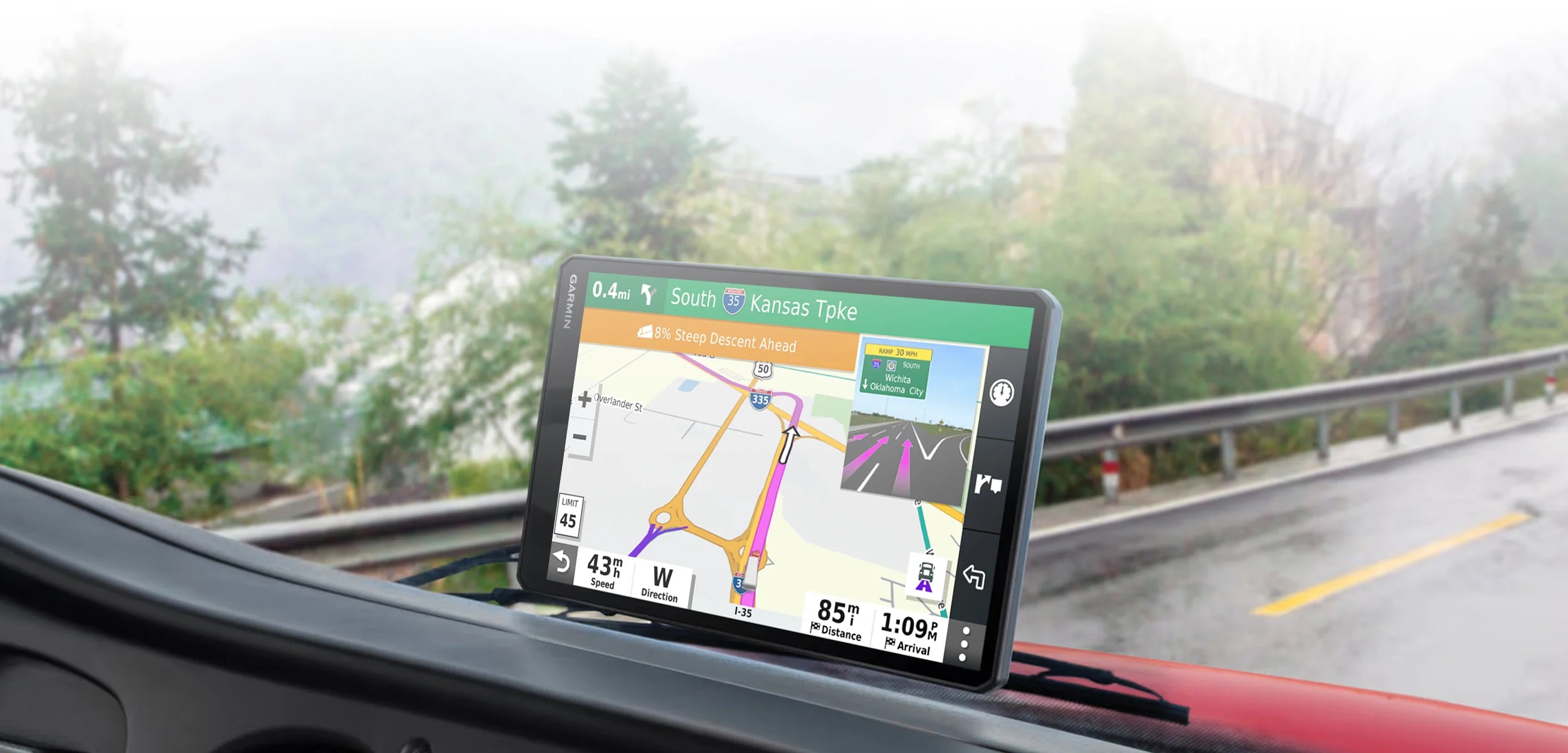 Get personalized routes based on your truck’s size and weight, along with alerts for road hazards like steep grades.