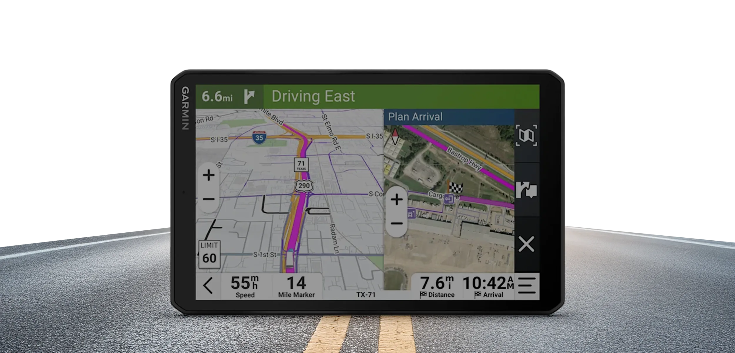 This extra-large screen dēzl is compatible with the Garmin eLog™ compliant ELD (sold separately) for hassle-free, subscription-free hours-of-service recording. No smartphone or tablet is required for this FMCSA-compliant solution.