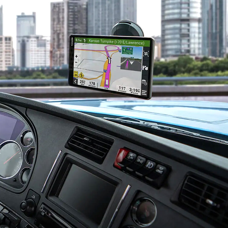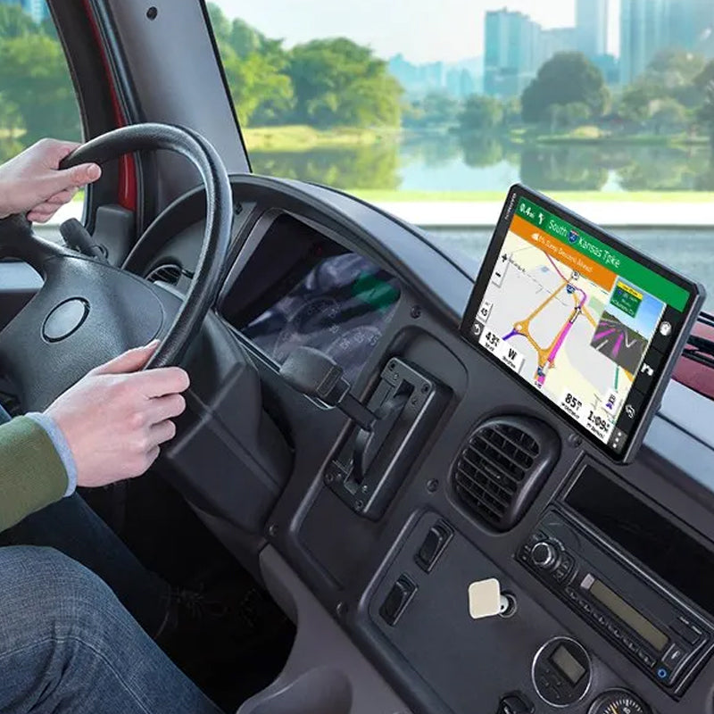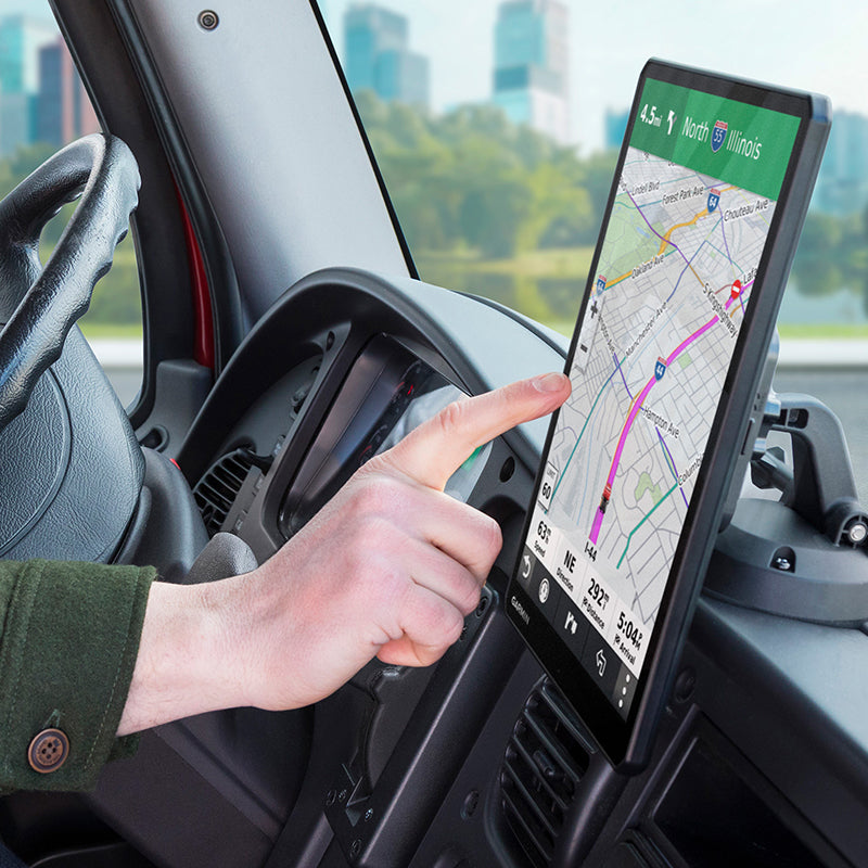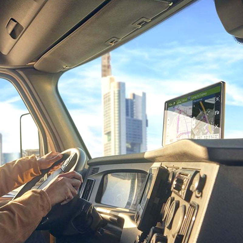 With its bright, crisp 10” touchscreen display, this dēzl truck navigator is designed for easy in-cab viewing and intuitive operation. Enjoy the option of displaying your navigation screen in landscape or portrait mode.